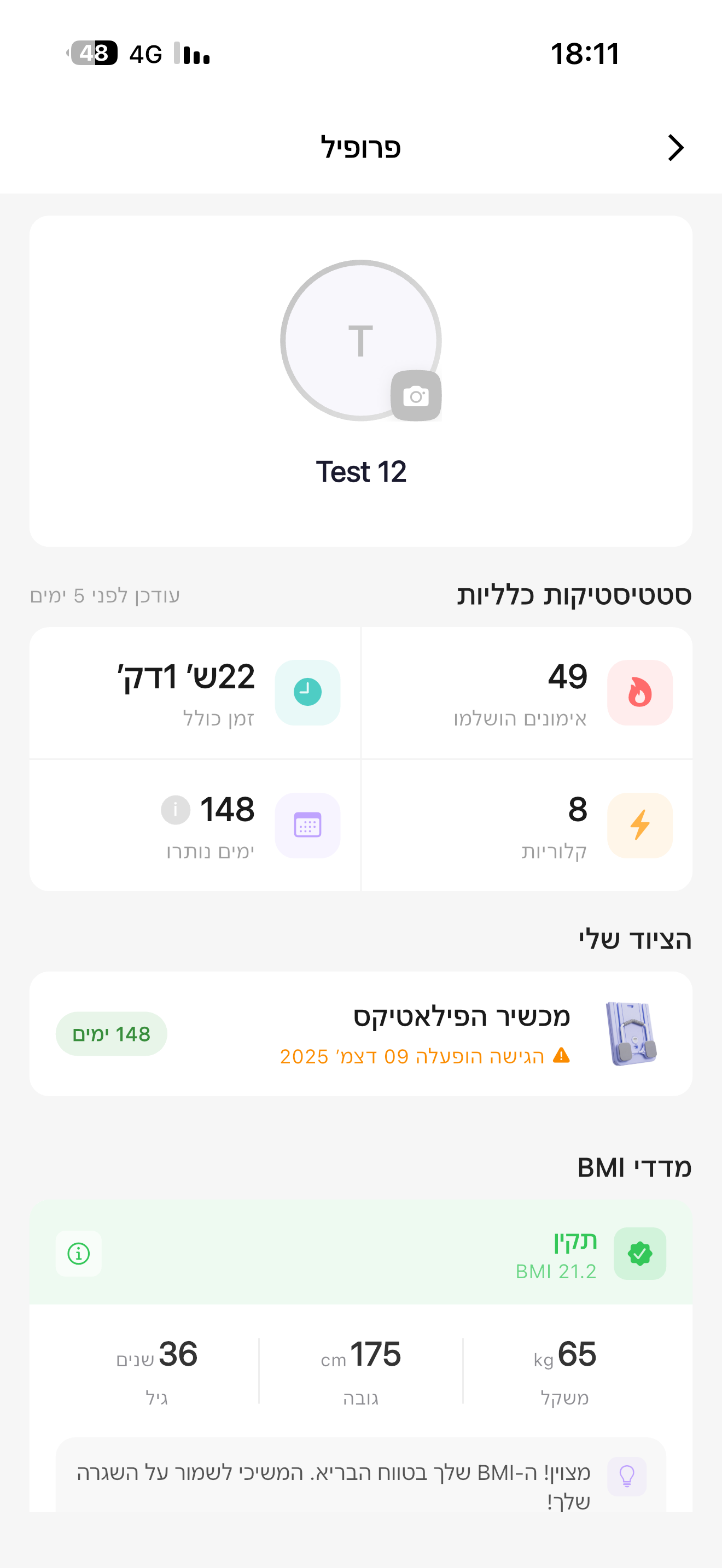 ספריית אימונים עשירה עם הנחיות מפורטות, מעקב קלוריות וזמנים — הכל באפליקציה אחת.